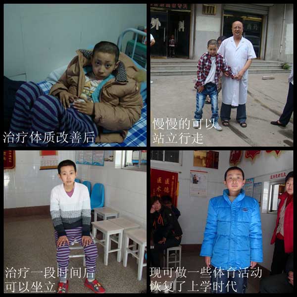 刘益林因患类风湿、强直性脊柱炎曾就诊于北京儿童医院、北京301医院、协和医院,在协和出院是由大夫劝其父母带其出院,说开个证明让再要个孩子的。在北京住院4个月,关节越发僵硬身体蜷缩更加严重,只能有父母给他穿衣、洗脸、吃饭。患病严重时每日发热40°—41°,持续一年半。被抱着来滨州通康医院住院时刘益林只能在床上卷缩着,全身关节呈僵硬变形状态,体重只有40多斤,16岁孩子蜷缩在床上像7.8岁的样子,在通康医院宋院长经调节免疫中西药辩证施治及调养用膳其体质逐渐改善,宋院长又经宋氏针刀、中药雾化及中西医药物等治疗方法使其逐渐由卧床开始能坐,能正常曲伸手指、胳膊、双足及双手,且能仰卧,俯卧,陆续在通康医院进行有效康复治疗,能站起来走路,在坚持锻炼下,能跑能跳了。现已能骑自行车、掰玉米、帮他妈压面条,成为英俊帅的小伙。今年已上了高职技校,成了一名大学生!